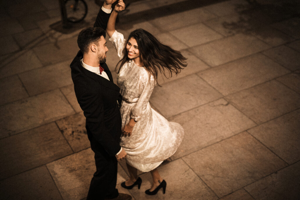Zamisli da tog posebnog dana zakoračiš na plesni podij s potpunim samopouzdanjem i gracioznošću. Naša škola plesa specijalizirana je za pripremu parova za prvi ples na vjenčanju — bez obzira na tvoje prethodno iskustvo. Kroz zabavne i stručno vođene satove naučit ćeš jednostavne, elegantne i efektne plesne kombinacije koje će ostaviti goste bez daha. Fokusiramo se na ritam, držanje, partnerstvo i koreografiju prilagođenu vašoj glazbi i stilu.